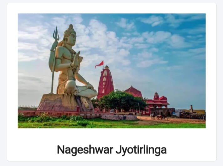 Near Dwarka, a sacred Jyotirlinga of Lord Shiva with a giant Shiva statue.